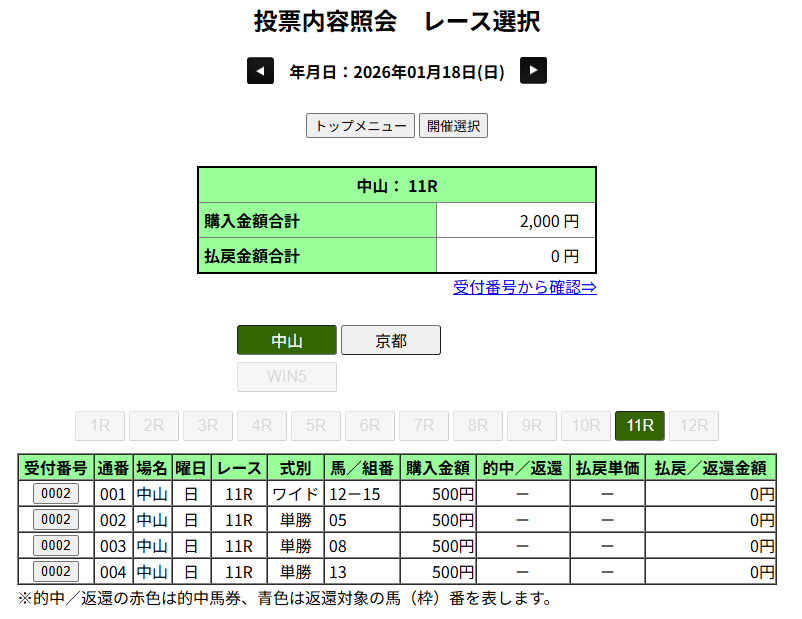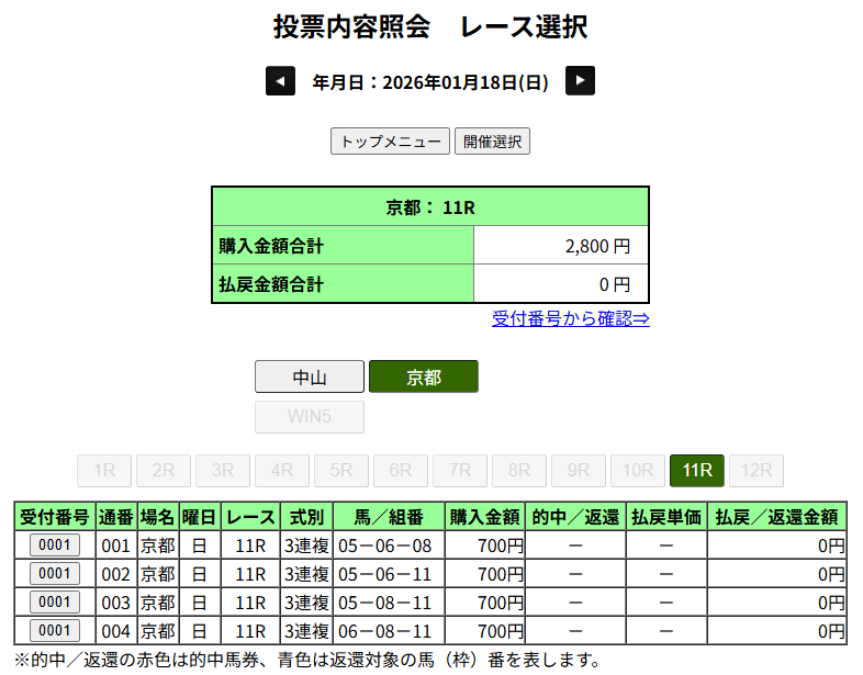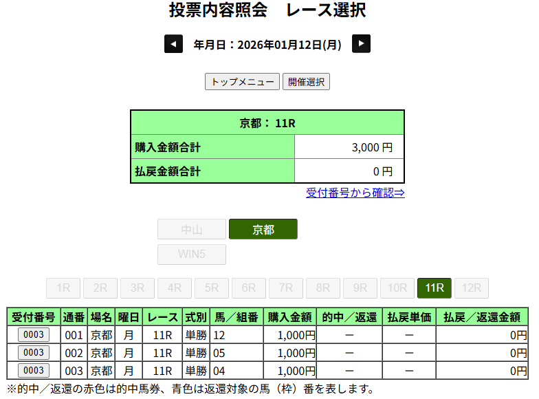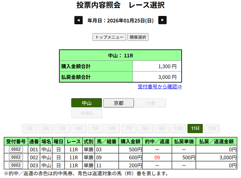 先週のボロ負けを受けて、かつ16番人気ということでそれぞれ100円だけにしておいて正解でした。
