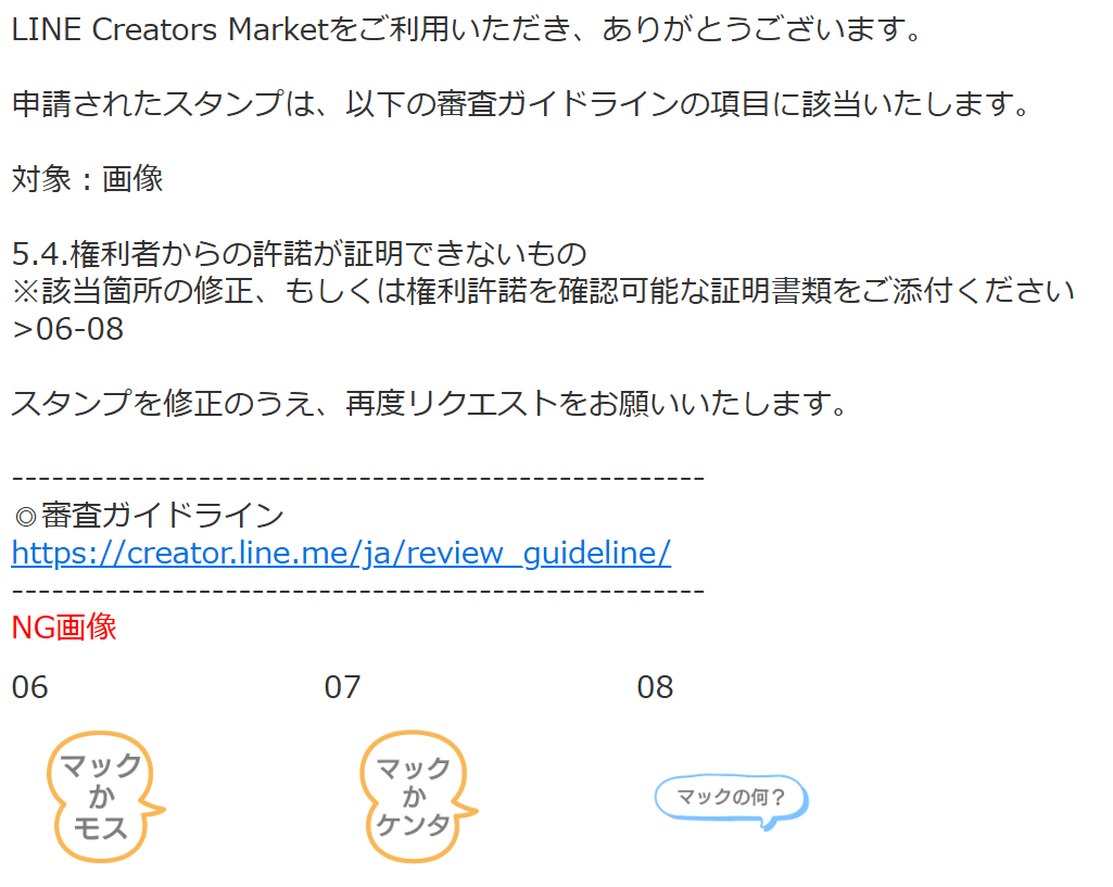 スタンプを修正のうえ、再度リクエストをお願いいたします。